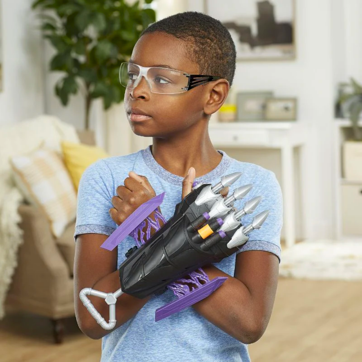 Bộ đồ chơi mô hình móng vuốt Mech Strike Black Panther Marvel là sản phẩm phụ kiện của siêu anh hùng Black Panther.Bộ đồ chơi bao gồm 3 phi tiêu Nerf mà trẻ em có thể bắn ra bằng cách kéo tay cầm trở lại để bật nguồn và kích hoạt bằng cách ấn hoặc nhấn nút.