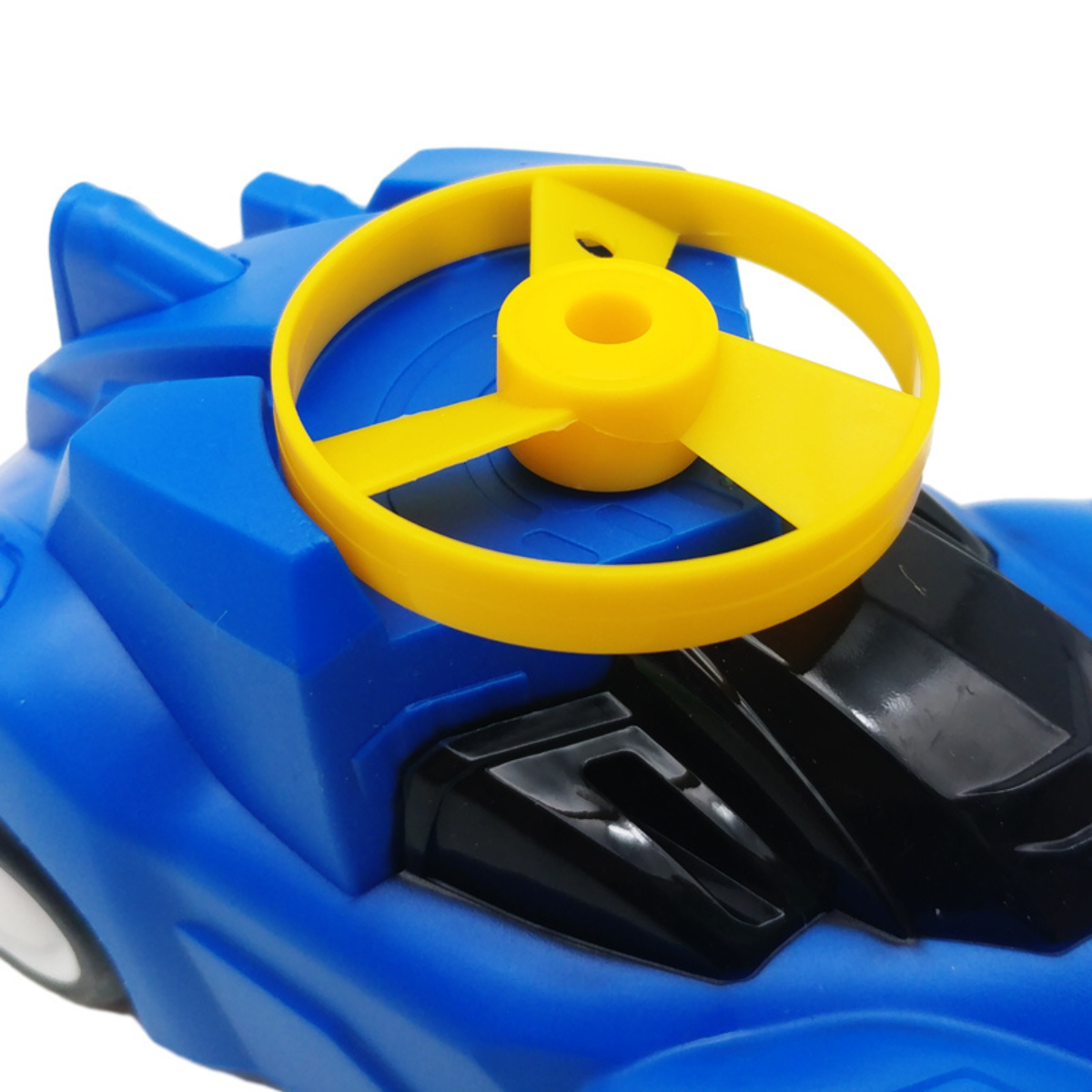 Với kết cấu chắc chắn được thiết kế bằng nhựa ABS và kim loại đúc giúp con quay chịu lực va đập tốt, khi con quay chuyển động có đèn led phát sáng tạo sự hấp dẫn, bắt mắt.Khuôn viền được thiết kế không góc cạnh đảm bảo độ an toàn cho bé khi chơi. Phụ kiện chính kèm theo là chiếc ô tô mô hình được thiết kế bằng nhựa ABS nguyên khối, chịu được lực va chạm mạnh và ở mũi xe đều có các nút bật khi có lực tác động giúp con quay và đĩa bay vút lên cao.