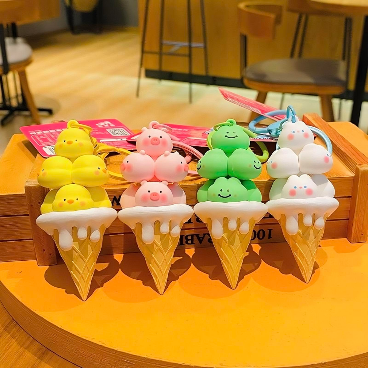 Với thiết kế mô phỏng những cây kem ốc quế xinh xắn, bên trên là những "viên kem" hình động vật ngộ nghĩnh như chú vịt con, heo hồng, ếch xanh hay đám mây bông, sản phẩm mang đến vẻ ngoài cực kỳ đáng yêu và bắt mắt. Màu sắc pastel tươi tắn cùng chất liệu mềm mại sẽ làm hài lòng cả bé yêu và người lớn.